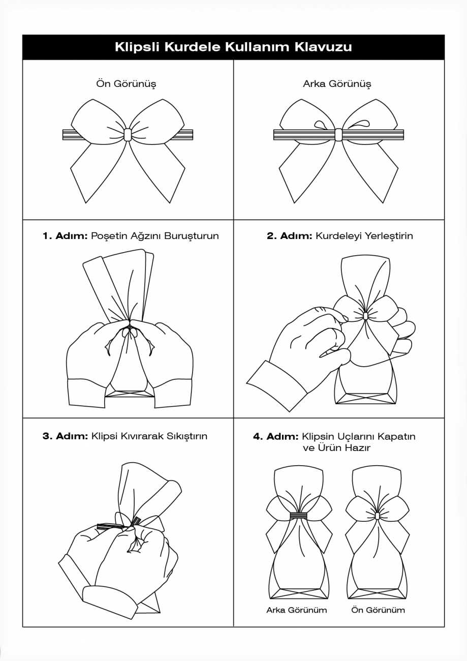 - Klipsli kurdele, şeffaf poşetlerimize dolum yapıldıktan sonra poşetin ağız kapamasında kullanılmaktadır.